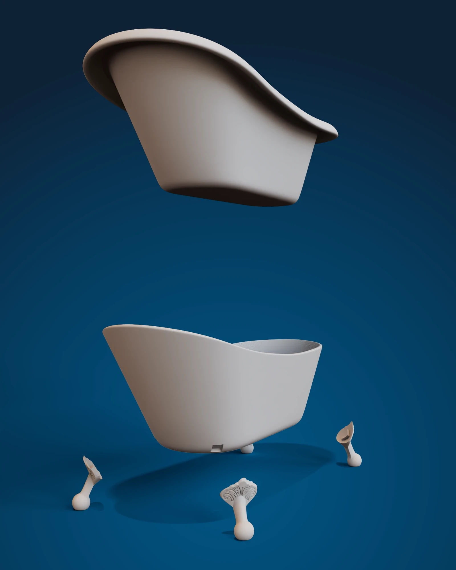 This claw foot tub was designed for a client who prints and finishes 1:12 scale doll house miniatures. The model is divided into six parts for easy printing in general as well as simpler multi color printing.
